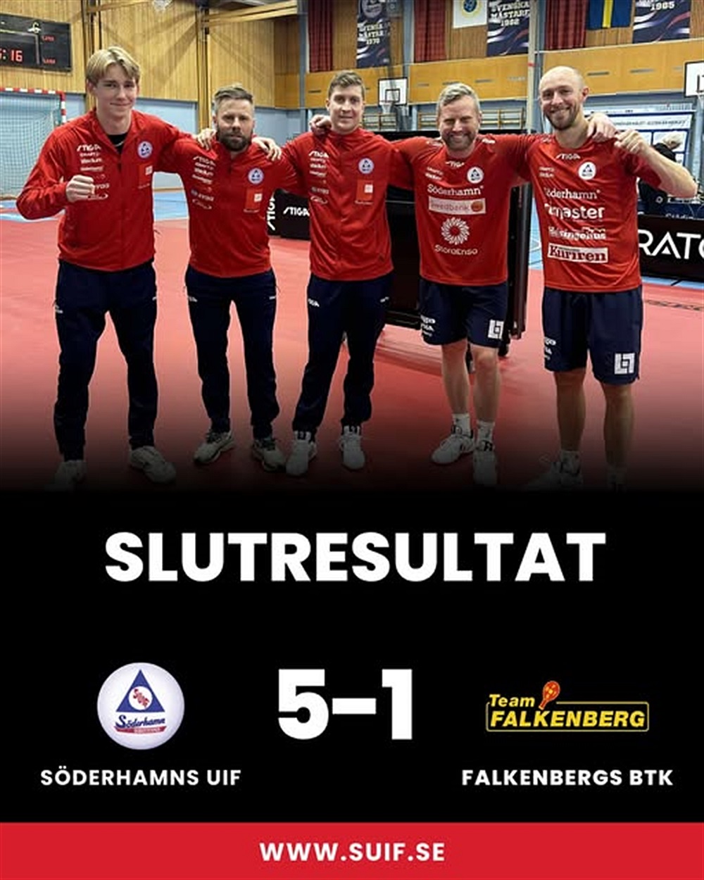 Det blev full pott, tre poäng, och avancemang i tabellen till en delad 2a plats efter hemmasegern mot Falkenbergs BTK i Pingisligans femte omgång. Ett toppat SUIF då både Jon och Jens fanns med i laguppställningen. Hemmalaget visade klass den här kvällen med endast fem förlorade set varav den danske landslagsmannen Tobias Rasmussen stod för tre vunna set i sin segermatch mot Anders.