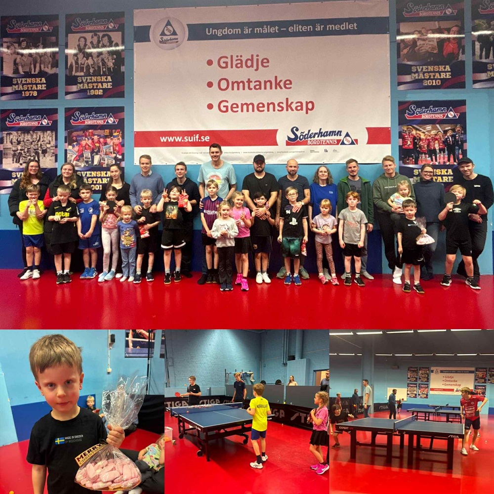 Ikväll, onsdag, samlades 30 spelare, barn o föräldrar, för en Julavslutning även för våra ”knattetomtar”, 5-8 år. Samma upplägg som för den äldre gruppen med den skillnaden att alla föräldrar deltog i både Skumtomtetävling och Godisrundpingis. SUIF hade även ikväll dukat upp Julfika för både stor o liten. Kvällens Skumtomtemästare i barnklassen blev Leo Nordberg medan Markus Englund tog hem den ärofyllda titeln i Vuxenklassen. Kvällens uppvisningsspel levererades av SUIFs unga stjärnspelare i Pingisligan, Adam Grawsjö-Wallin och Khai Noah Lam