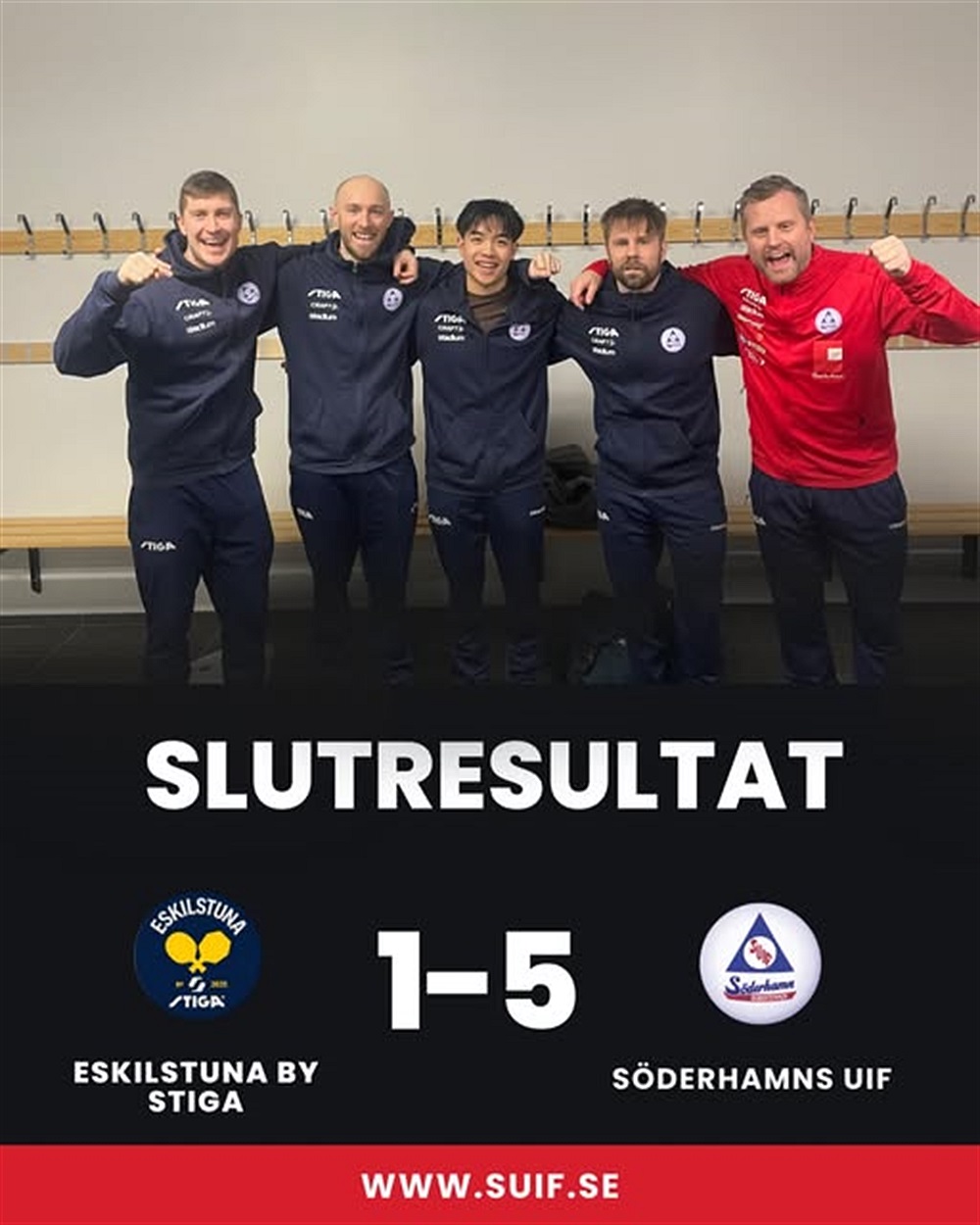 Stiga. En övertygande lagseger med 5-1 och tre sköna poäng som ökade försprånget till tredjeplacerade Halmstad. Hemmalaget kom med två utländska förstärkningar, med internationell erfarenhet, Amireza Abassi, Iran, och Jeet Chandra, Indien. Viktor visade sin klass när han lyckades vända och vinna mot båda dessa starka spelare. Abassi är mycket svårspelad med sitt långnabbade gummi på backhandsidan vilket Jon fick erfara i den enda förlustmatchen för kvällen. Nästa torsdag 22 januari blir det långresa till västkusten för bortamatch mot Falkenberg i den 10e omgången.